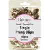 Create flawless hairstyles with Brittny Single Prong Clips! These 12 count or 80 count silver pieces feature a secure single prong design, perfect for a variety of styling needs. Experience smooth, tight hold without the risk of tugging or breakage. Make each hairdo fruition with byte-size confidence – try Brittny Single Prong Clips today!